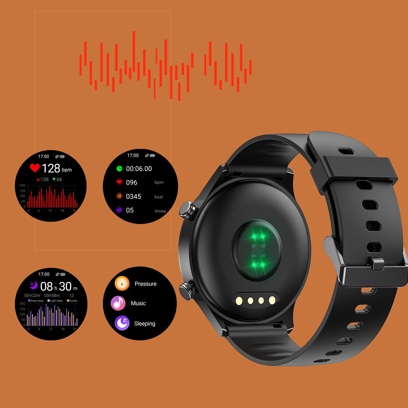 Maintain your health by measuring blood oxygen on Tranya smartwatch. Check the amounts of oxygen in your bloodstream at any time. Measure your blood oxygen level with an advance sensor and app. Check your heart beat and take an ECG whenever you want.