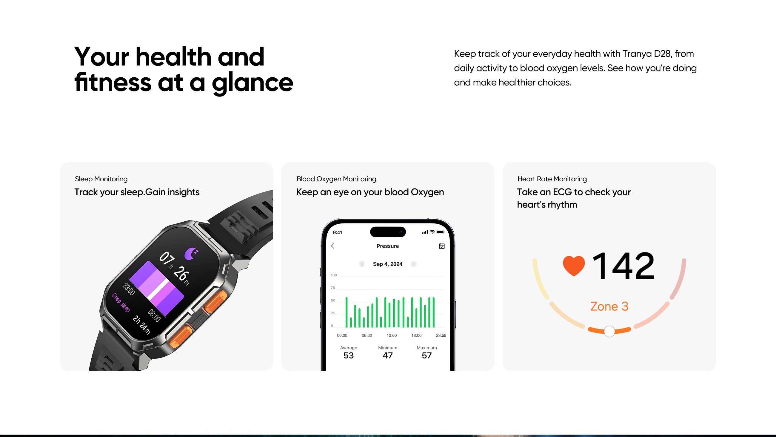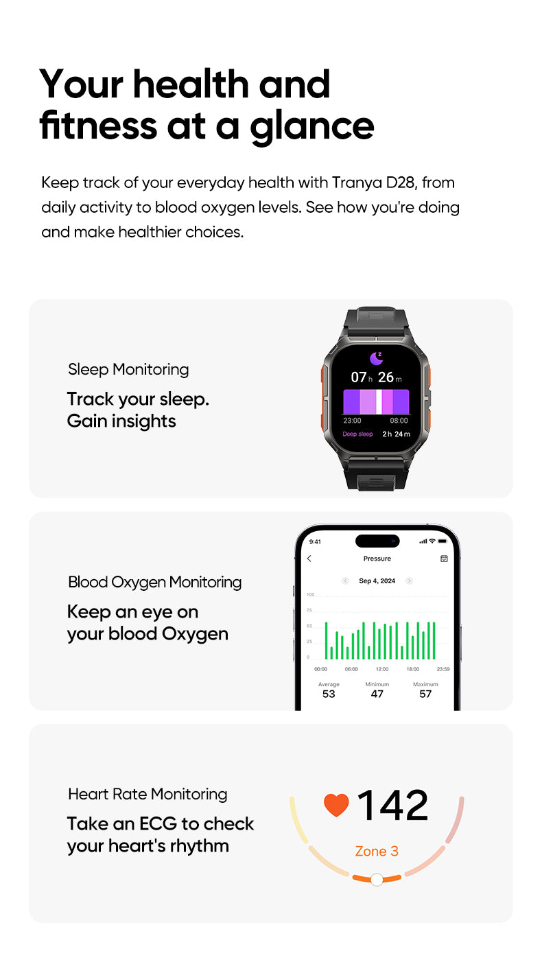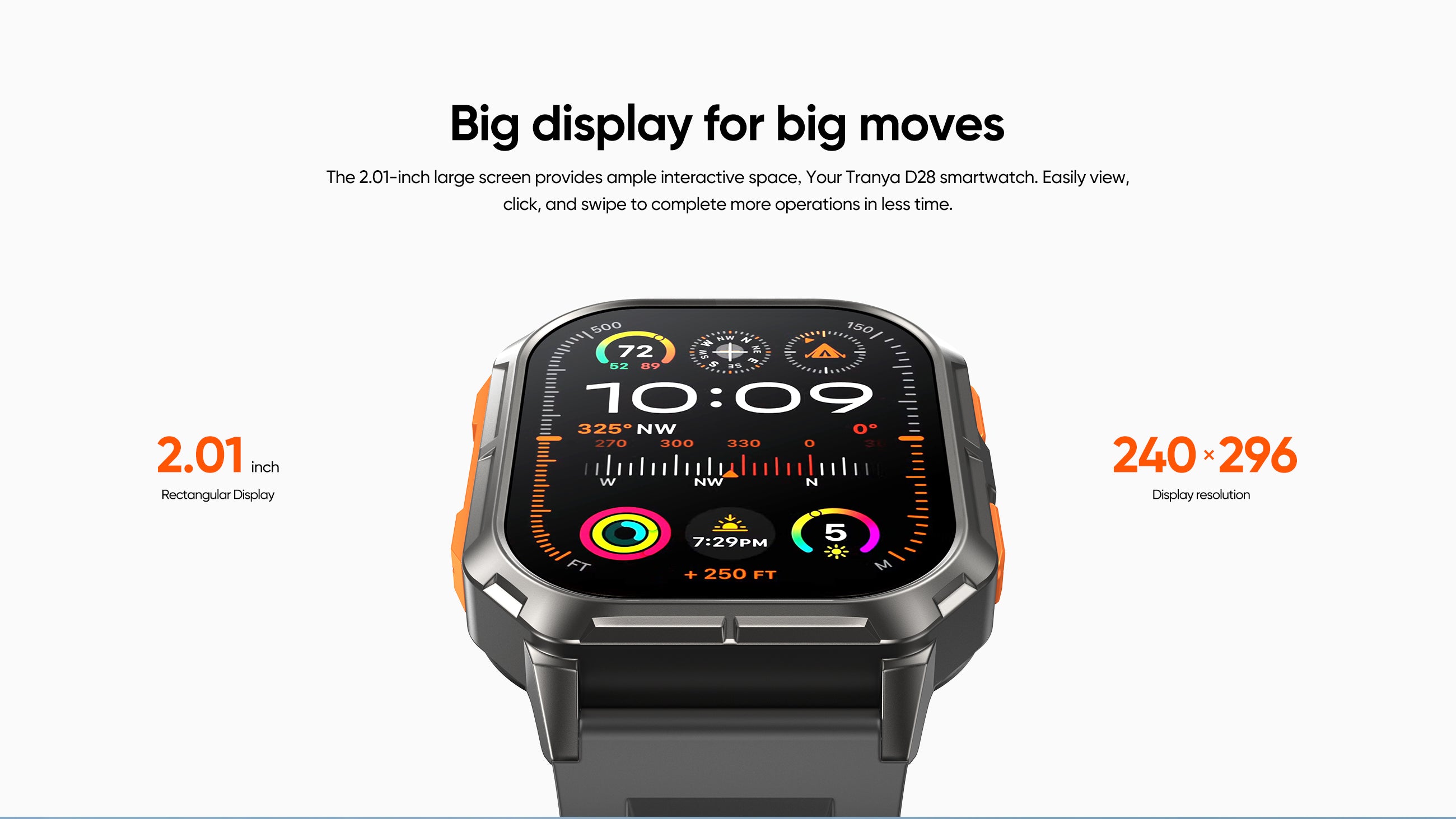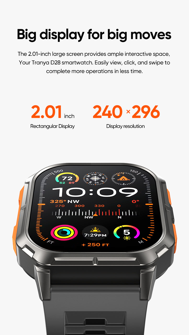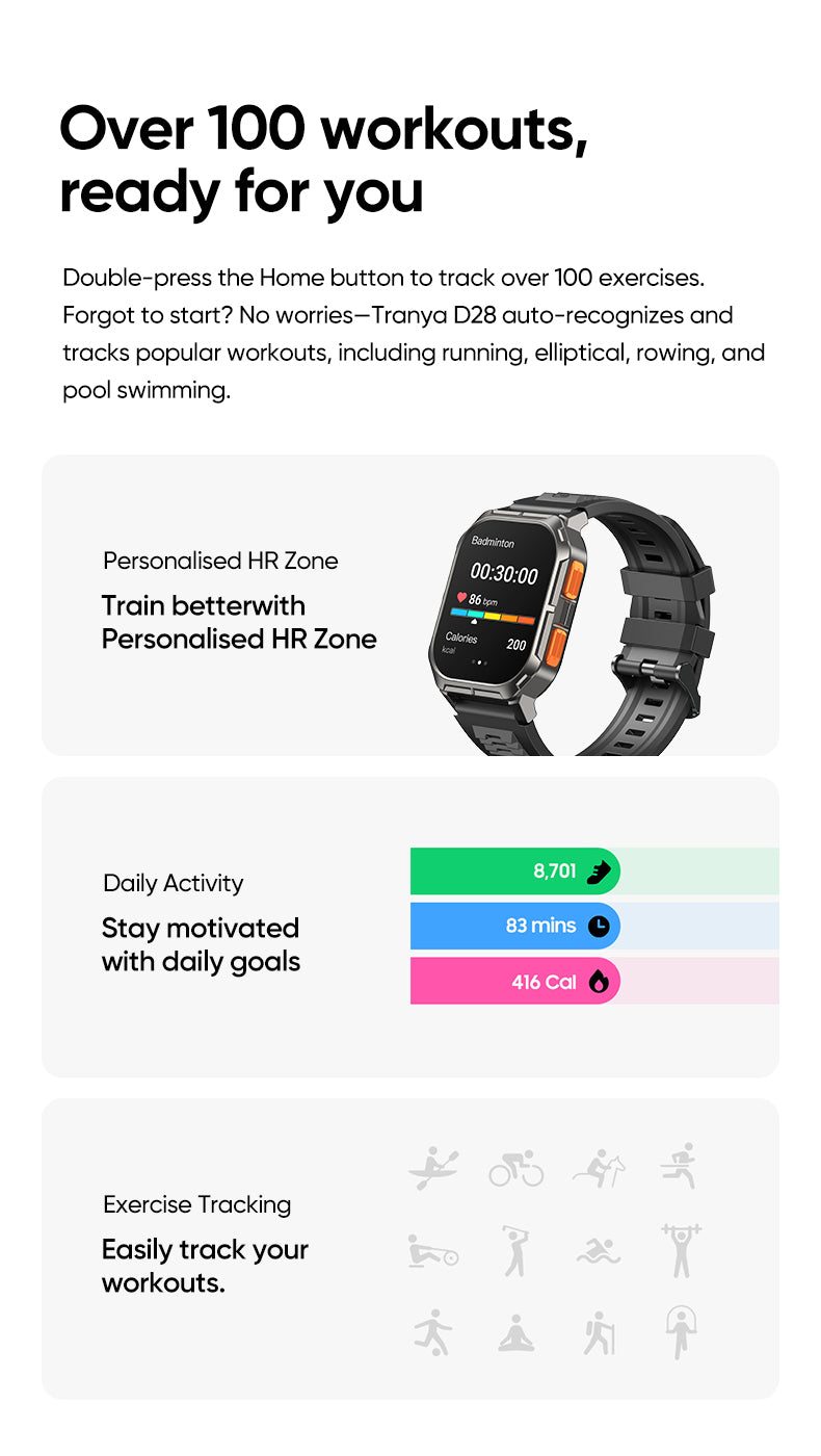 Tranya D28 Smartwatch® Bluetooth Calling, 100+ Sports Mode, Health Monitoring of Sleep, Blood Pressure, Heart Rate, Blood Oxygen, Compatible with Android/iOS System
